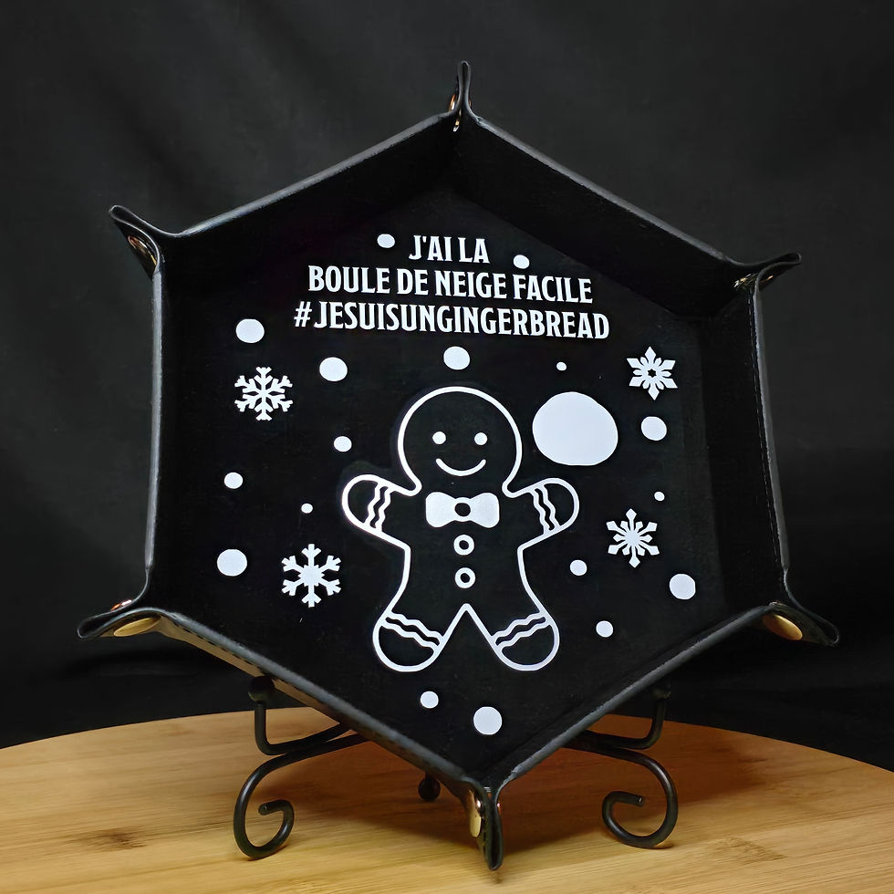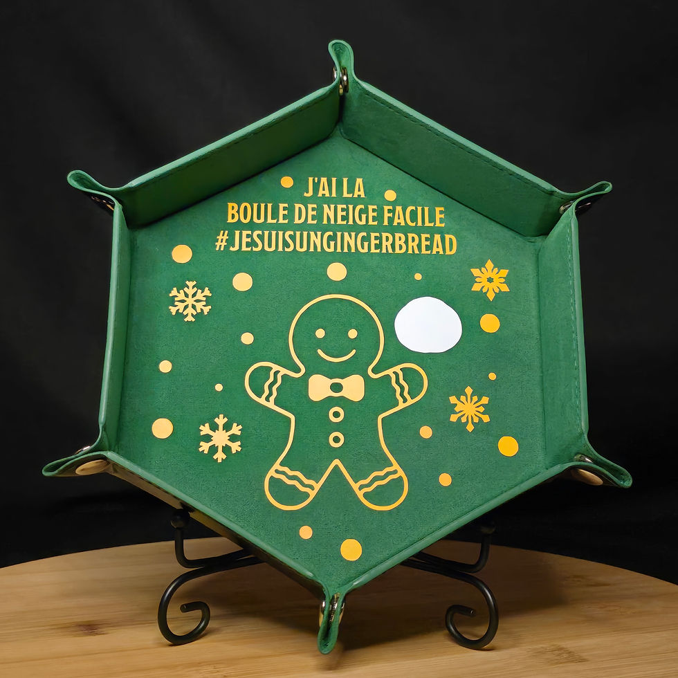 Le choix des teintes, les combinaisons d’éléments, la mise en forme, les dés percés un à un, les plateaux à dés personnalisés pour accueillir les jets les plus épiques… jusqu’aux noms farfelus qu’elle chuchote en ricanant, comme des sorts facétieux.